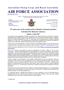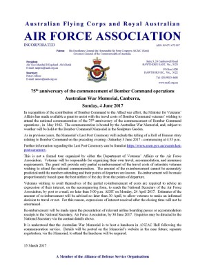 Australian War Memorial Bomber Command 75th anniversary Luncheon notice