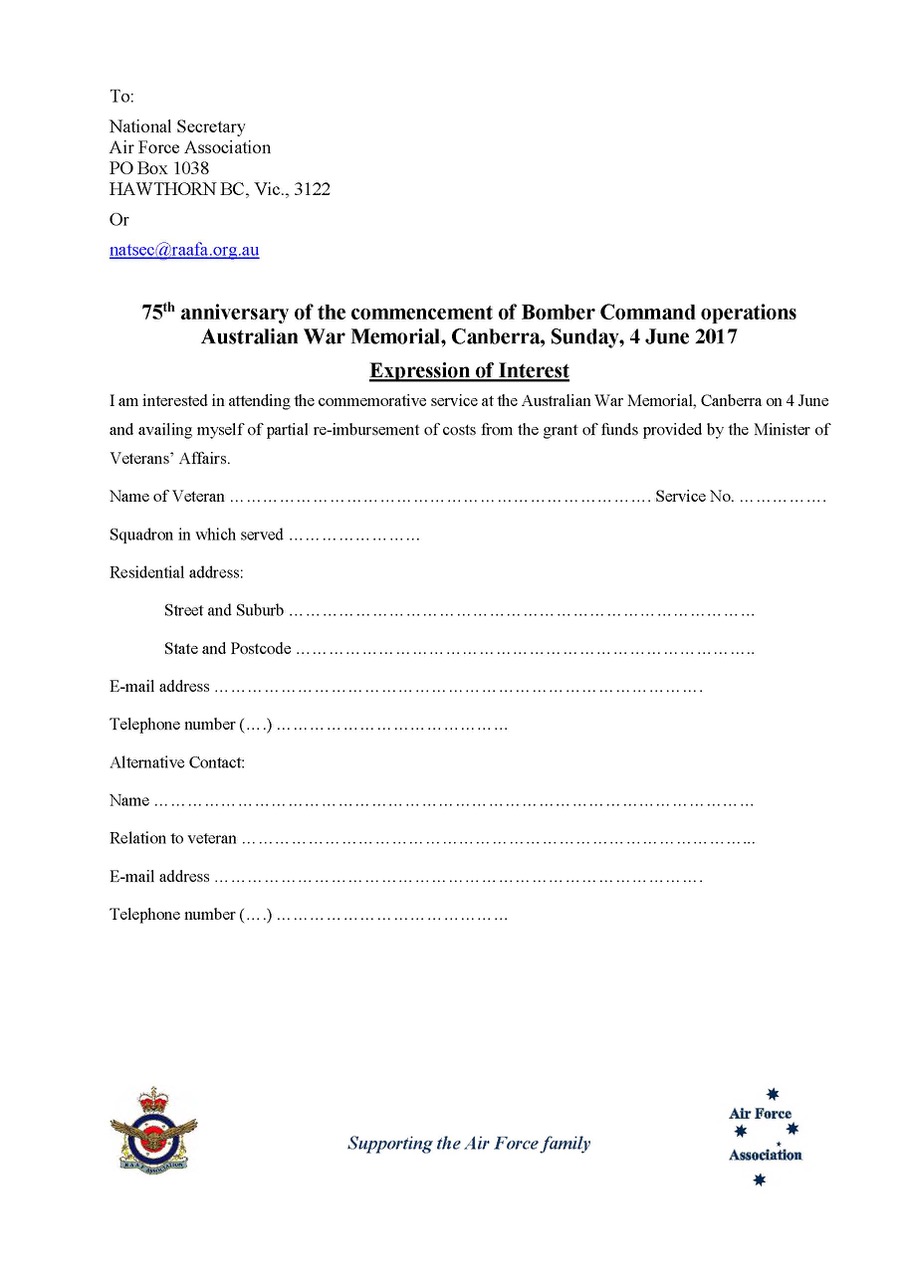 Australian War Memorial Bomber Command 75th anniversary Luncheon notice