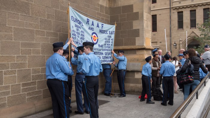 As in the past we have secured the support of the Air League of Australia who will be providing Air Cadets to carry the historic Bomber Command banner. Please look for the banner on the steps of St. Paul’s as a rallying point when you arrive.